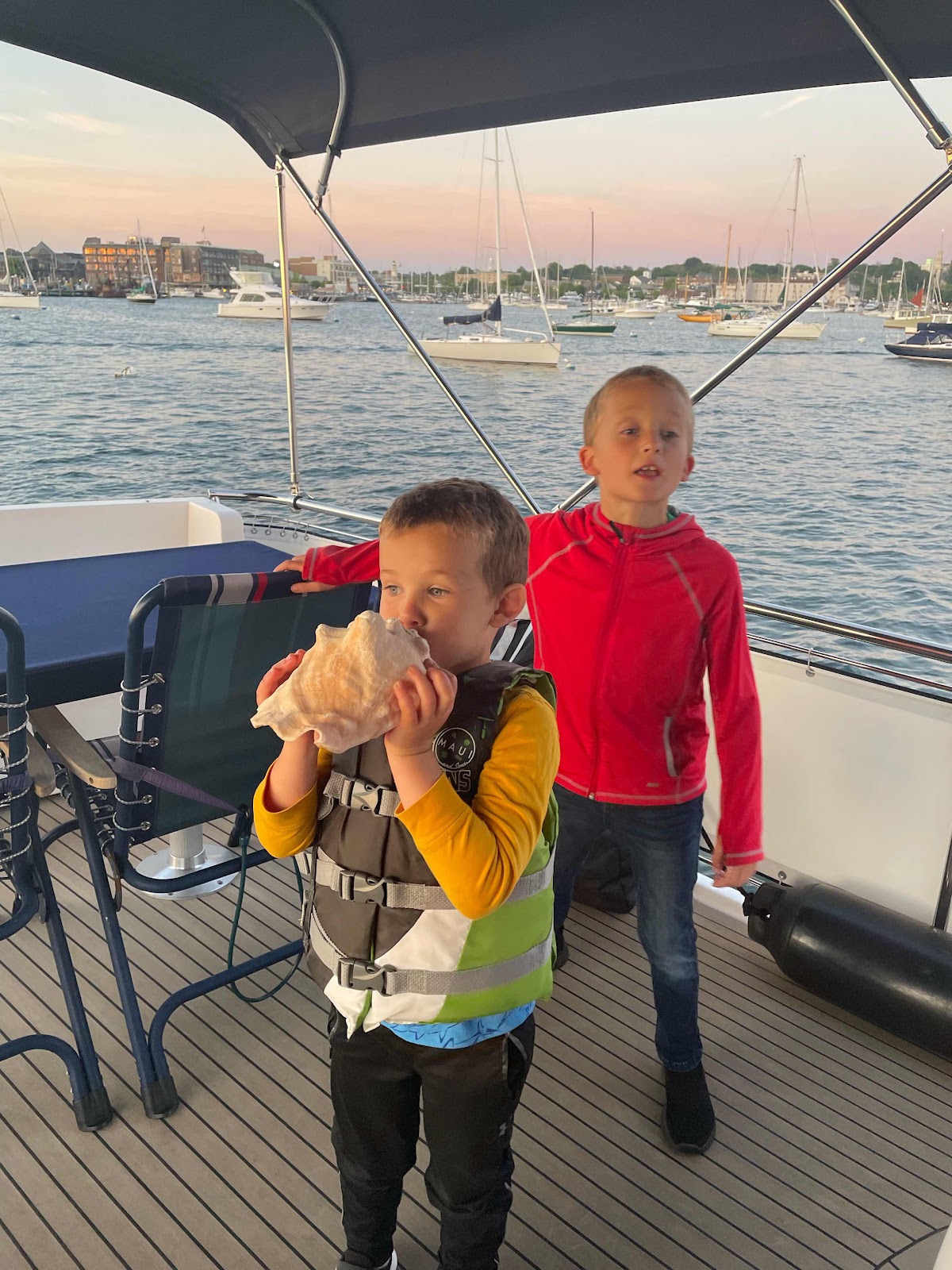 Conor and Ronan had a great time laughing at Nana when she tried to blow the conch for sunset however when it was their turn they realized that there was some skill required.