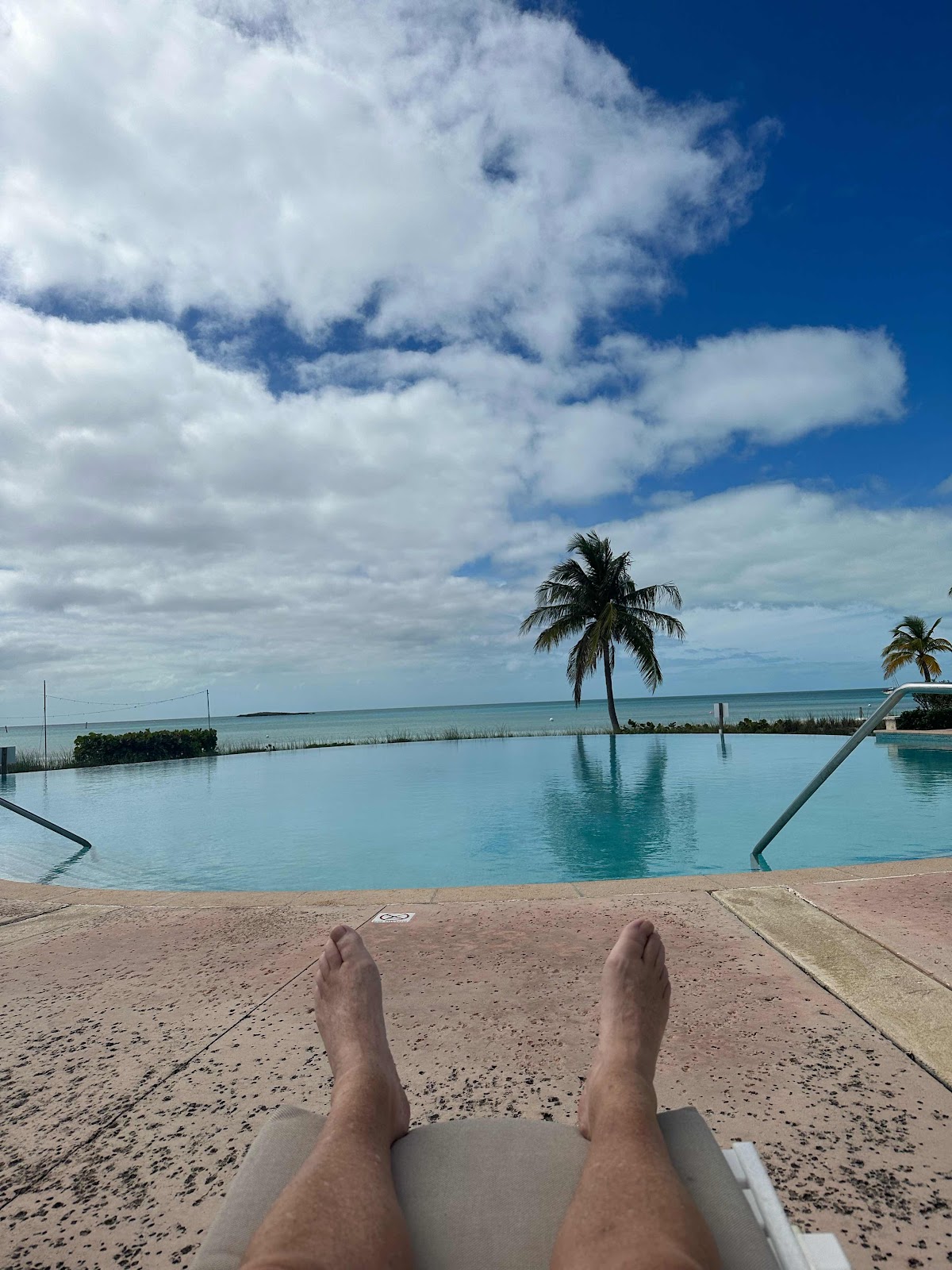 Nandad felt comfortable today to stretch out by the pool without his yellow ankle bands - so we are hoping he will not have any bites.